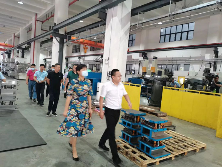 周局一行首先參觀考察了該公司一樓模具車間、智能數控加工車間,二樓機器人生產車間以及研發(fā)中心,詳細了解公司模具、機器人產能、工藝性能、上下游供應鏈、產品優(yōu)勢及應用領域等情況。