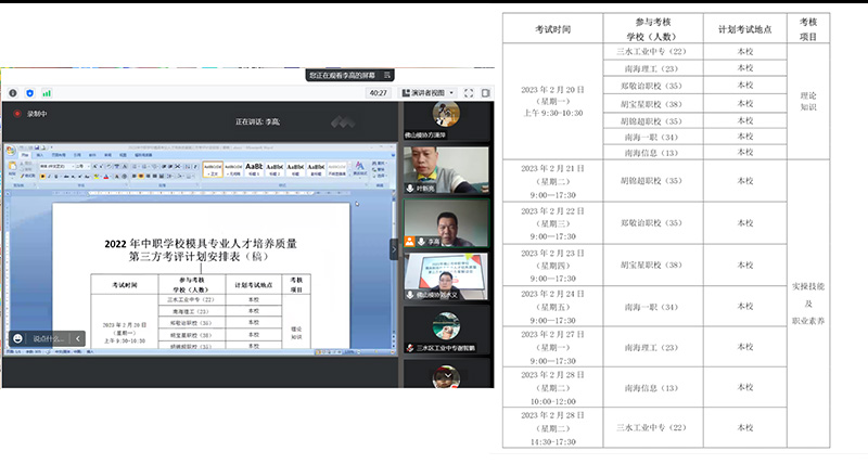 會議開始,佛山市教育局、順德區(qū)職業(yè)教育發(fā)展促進會岑倩映老師介紹第三方考核評價背景情況,對2022年考核工作提出了要求和部署,并對協(xié)會這幾年來第三方考核工作給予了高度的評價和認可。